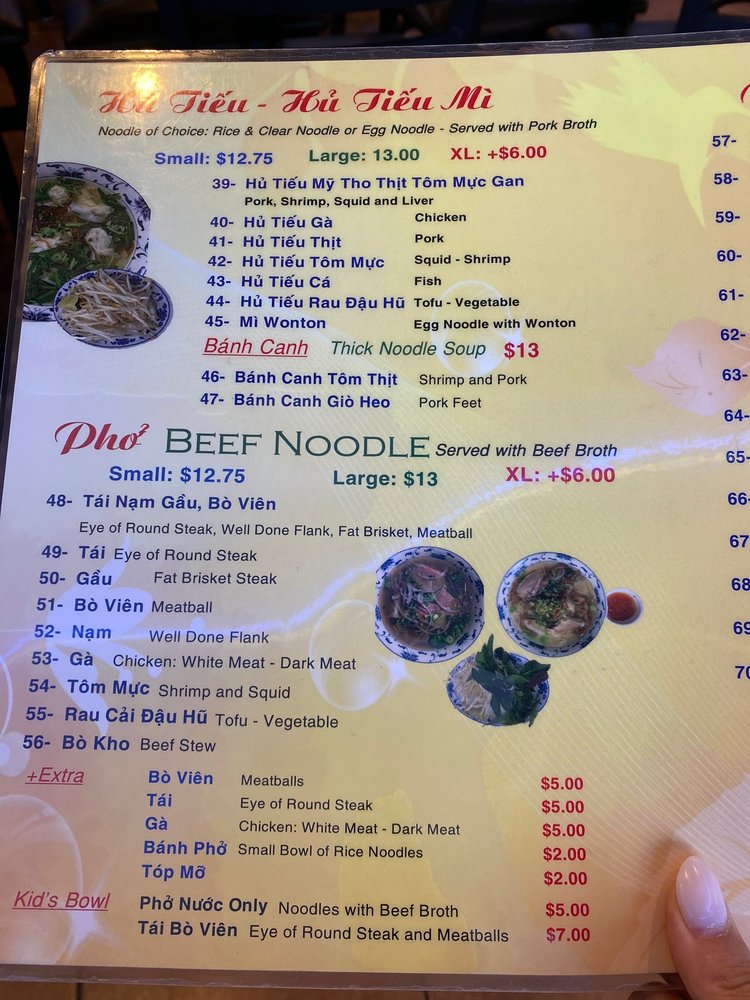 Hu Tieu My Tho offers a cozy and welcoming atmosphere, making it a perfect spot for a casual meal. The menu features a variety of traditional Vietnamese dishes like the flavorful Hu Tieu My Tho beef noodle soup and the delicious shrimp-squid-pork liver noodle soup. The portions are generous, offering excellent value for the price. Customers rave about the authenticity and comforting taste of the dishes, such as the well-cooked pork, pork liver, and seafood toppings. The service is fast and attentive, with a friendly staff that pays attention to detail. With a long list of appetizers and beverages, Hu Tieu My Tho is a hidden gem serving up comforting and satisfying Vietnamese cuisine.